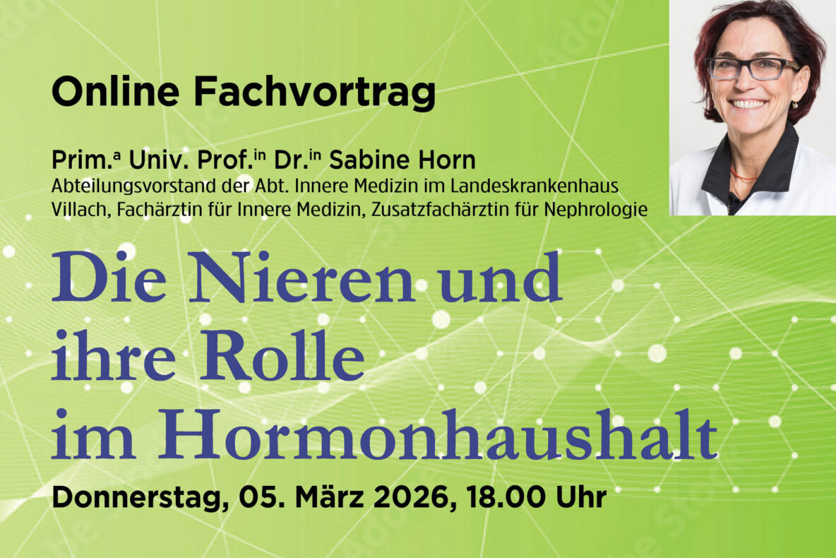 Die Nieren und ihre Rolle im Hormonhaushalt – Mineralstoffe als Teil 2 der Reihe am Donnerstag, 05.03.2026, ab 18 Uhr mit Prim.a Univ. Prof.in Dr.in Sabine Horn